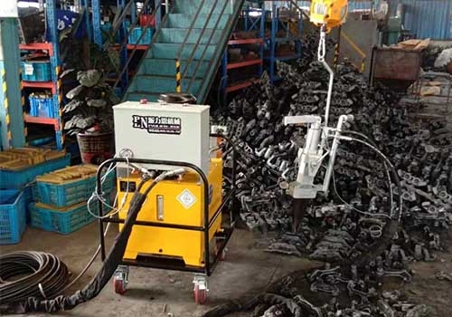 鑄件(jian)澆(jiao)冒口(kou)分離器(qi)工作原理(li):工藝流(liu)程是(shi):油泵站接380伏電(dian)源(yuan),油泵站和(he)分離器(qi)通過2根高壓油管(一進一出)連接,分離器(qi)由平衡葫蘆吊懸(xuan)掛方便操(cao)作。以下是(shi)工作原理(li)。鑄件(jian)澆(jiao)冒口(kou)分離器(qi)通過液(ye)壓泵站產生18-70MPa液(ye)壓動(dong)力。